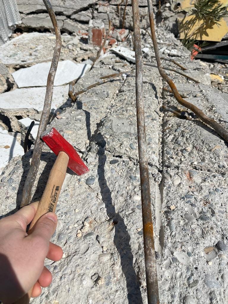 Bazı yapılarda ise yumuşak kat hasarı tespit ettik. Fotoğrafta da gözüktüğü gibi zemin kat direk çökmüş ve diğer katlar olduğu gibi duruyor.