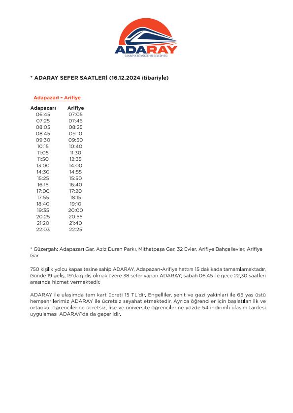 Arifiyeden Haber olarak, ADARAY sefer saatleri konusunda yaşanan bu karışıklığı yetkililerin dikkatine sunuyor, mağduriyetlerin giderilmesini bekliyoruz.
