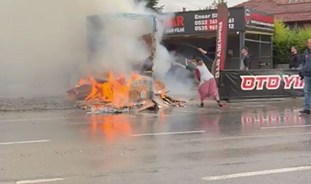 Alevlerin yükseldiğini gören çevredekiler, kamyoneti hızla yakındaki bir oto yıkamaya götürdü. Burada vatandaşlar hortumla alevleri söndürmeye çalışırken, kağıt toplayıcısının yakını olan bir kadın da kovaya doldurduğu suyu alevlerin üzerine dökerek yardım etti.