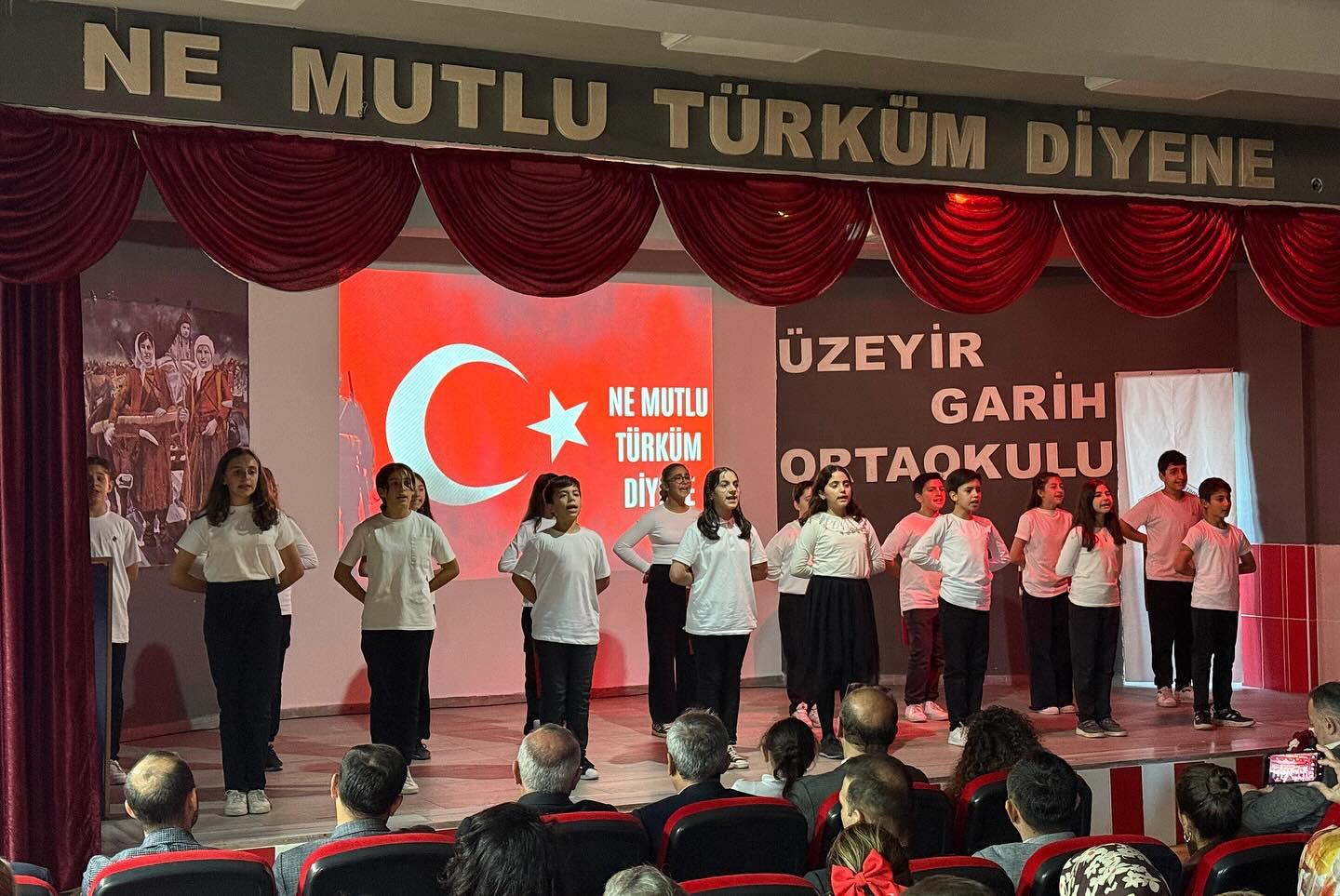 Öğrencilerin hazırladığı “Kuvâ-yi Milliye” temalı gösteri ve okul korosunun seslendirdiği Cumhuriyet marşları salonda duygu dolu anlar yaşattı.